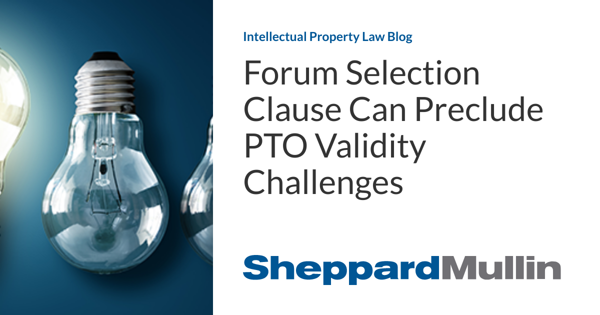 Forum Selection Clause Can Preclude PTO Validity Challenges