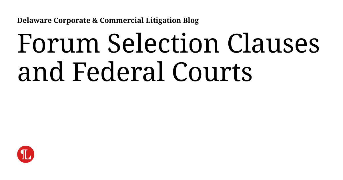 Forum Selection Clauses and Federal Courts Delaware Corporate