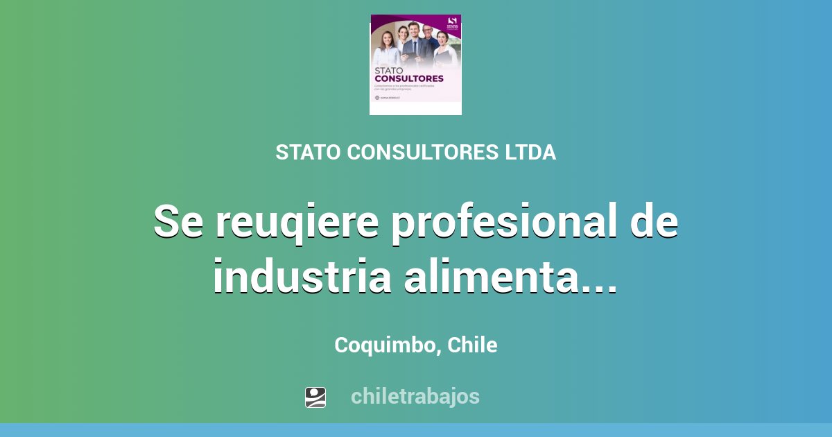 SE REUQIERE PROFESIONAL DE INDUSTRIA ALIMENTARIA O TECNOLOGÍA EN ALIMENTOS Coquimbo