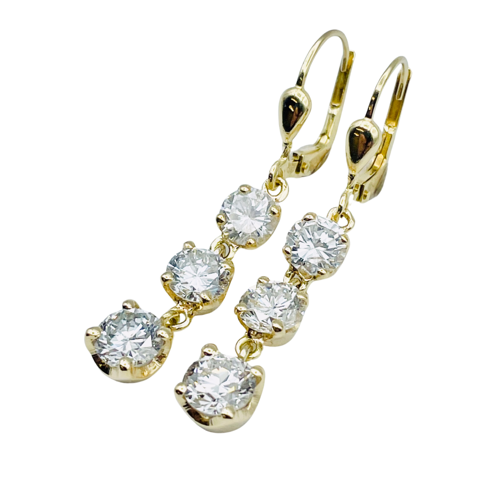 Boucles d'oreilles Pendantes en or jaune 18k avec 3,0 Cts de Diamants
