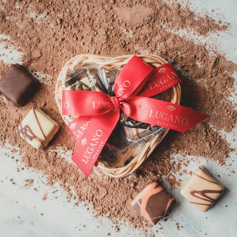 Cesta Coração 4 Bombons 52g Chocolate Lugano Chocolate Lugano