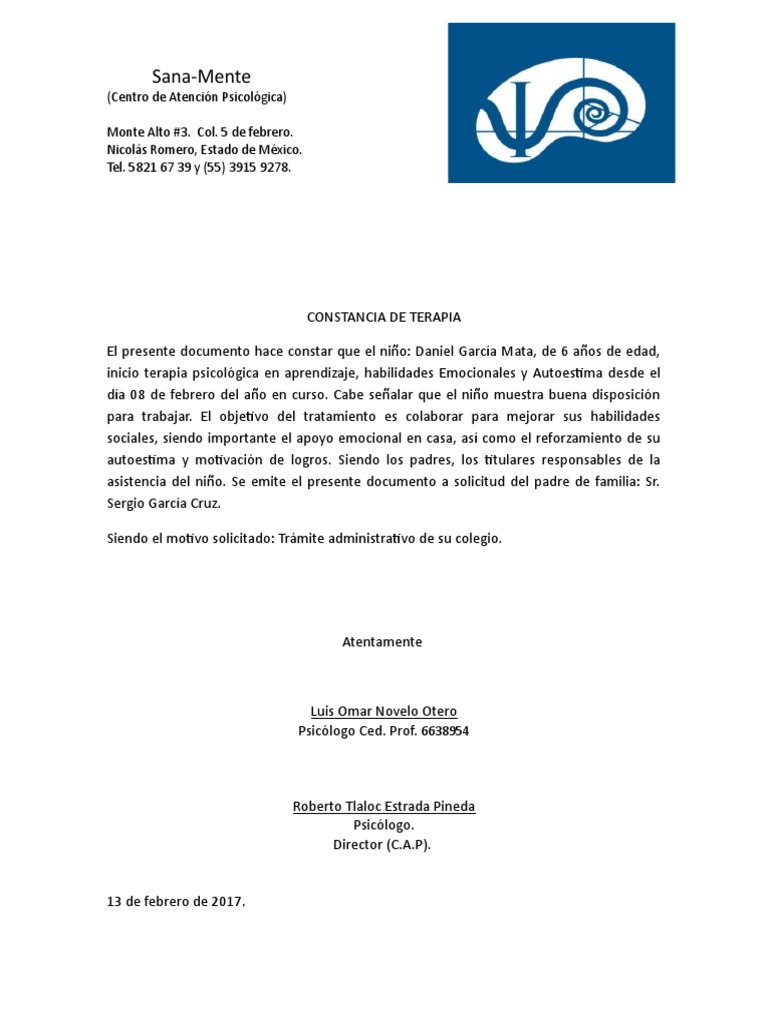 Constancia de Terapia