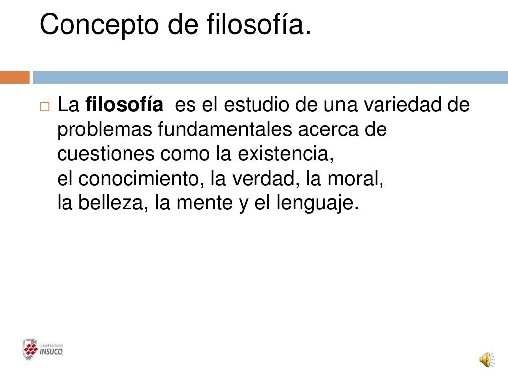 Definición de Filosofía. La filosofía es un campo de estudio donde los interrogantes principales se relacionan con problemas ligados a la existencia, la ética y la moral, la belleza y la estética, el lenguaje, y el conocimiento como construcción. La filosofía como disciplina abarca un abanico amplio de campos de estudio, y ha estado.
