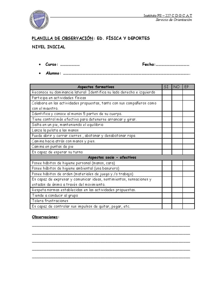 Ficha De Observacion Educacion Fisica Images and Photos finder