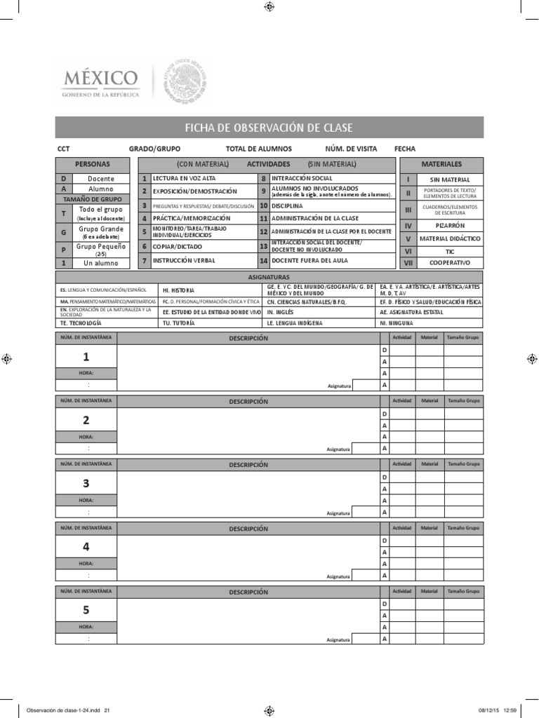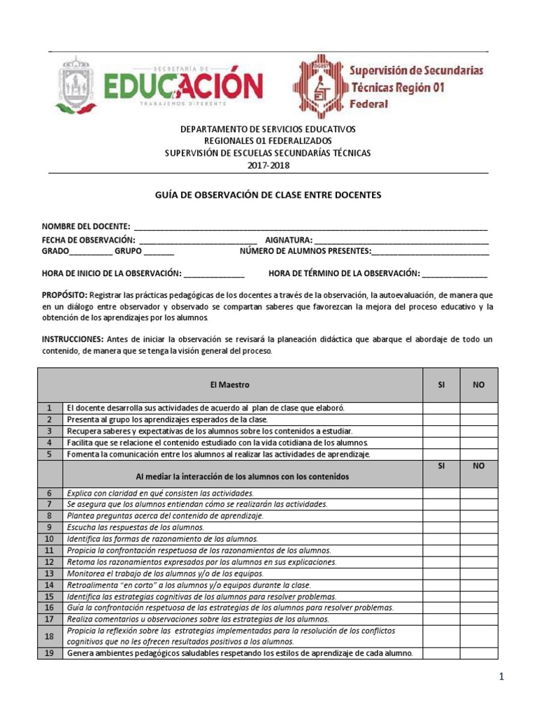 FICHA OBSERVACION DE CLASE. 2018 •. 15FTV2035Z ZONA V038/11. La presente ficha acompaña la organización del encuentro de docentes en la mo-dalidad de Aprendizaje entre escuelas, y brinda, en primer lugar, lo que se concibe desde la SEP como la observación de clase entre maestros; en segundo término, el enfoque y sentido que tiene.