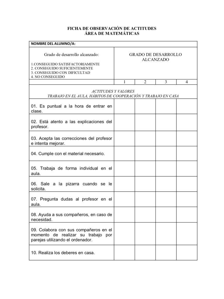 FICHA DE OBSERVACIÓN DE ACTITUDES