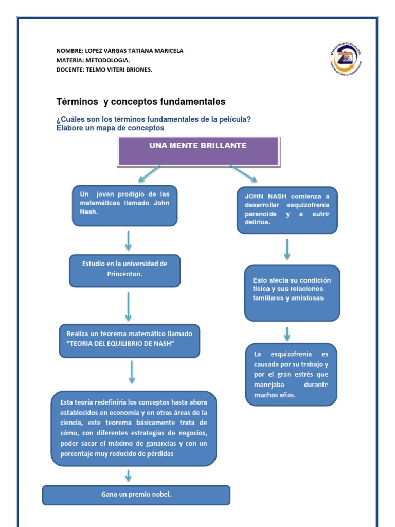 1. ENSAYO SOBRE UNA MENTE BRILLANTE Esta película es el vivo ejemplo de todo lo que un ser humano puede llegar a hacer independientemente de las enfermedades, situaciones económicas, sentimentales, familiares, y todos los problemas que puedan surgir en la sociedad. La película una Mente Brillante comienza a desarrollarse en Septiembre de.
