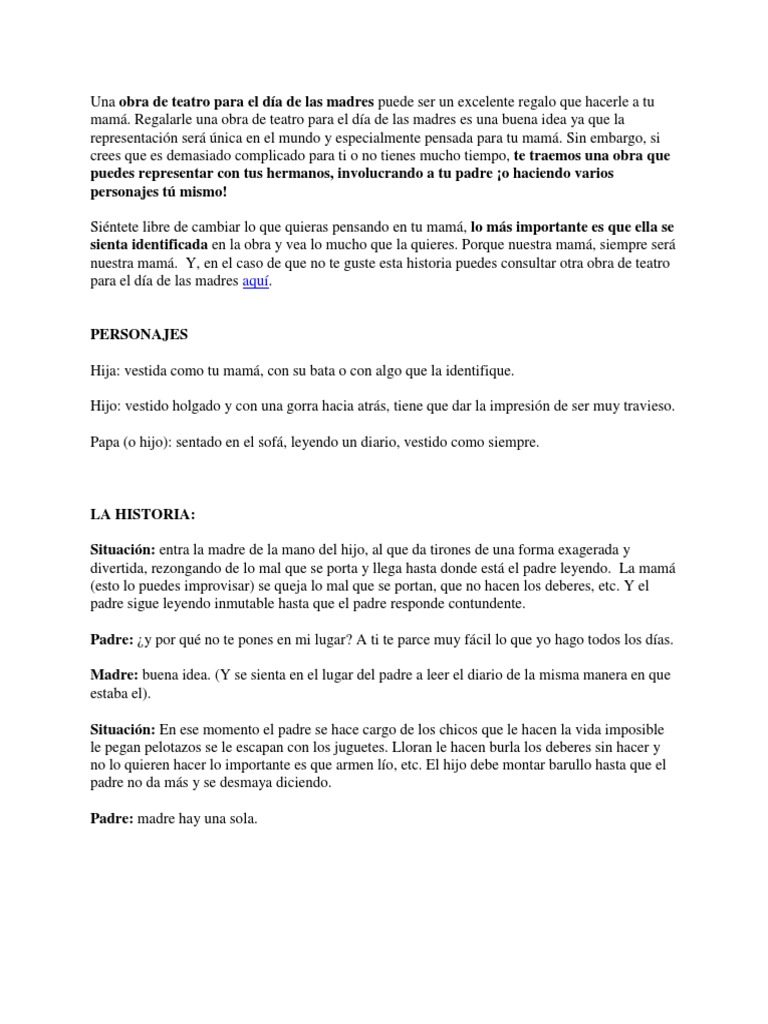 Obra de teatro para el dia de la madre Dia de las madres, Obras de